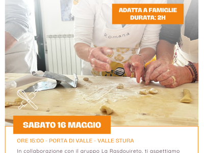 Sabato 16 maggio, alle ore 15,00 in Porta di Valle a Demonte (Via Nazionale, 17), il gruppo "La Rasdouireto" organizza un laboratorio culinario dedicato ai "crouset", la pasta tipica della Valle Stura.