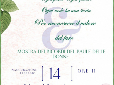 Nel Palazzo delle Meridiane, sarà aperta la "Mostra del Ricordi del Baule delle Donne", ogni punto, ogni quadro, ogni nodo ha una storia per riconoscere il valore del fare.