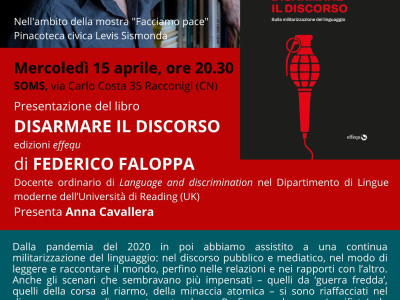 Mercoledì 15 aprile, alle ore 20.30, presso la SOMS di Racconigi, nell'ambito della mostra "Facciamo pace" organizzata dalla