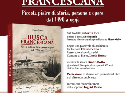Venerdì 17 aprile, alle ore 20,30 presso il Convento dei Cappuccini di Busca, appuntamento con la presentazione del libro "Busca francescana. Piccole pietre di storia, persone e opere dal 1490 a oggi" di Flavio Peano.