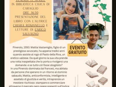 Venerdì 17 aprile, alle ore 16,30 presso la Biblioteca Civica di Caraglio, appuntamento per la presentazione del libro "Il palazzo dei libri proibiti" in compagnia dell'autrice Chiara Romanello.