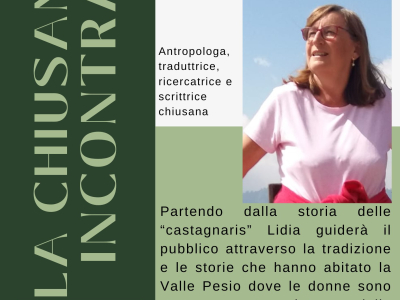 Mercoledì 4 marzo alle ore 21.00 presso la Biblioteca civica "E. Alberione" di Chiusa di Pesio l'Associazione "La Chiusana" incontra l'antropologa, traduttrice, ricercatrice e scrittrice chiusana Lidia Dutto.