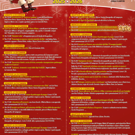 A Sampeyre vi aspettano numerosi eventi da non perdere fino al 10 gennaio. Prossimi appuntamenti di seguito.