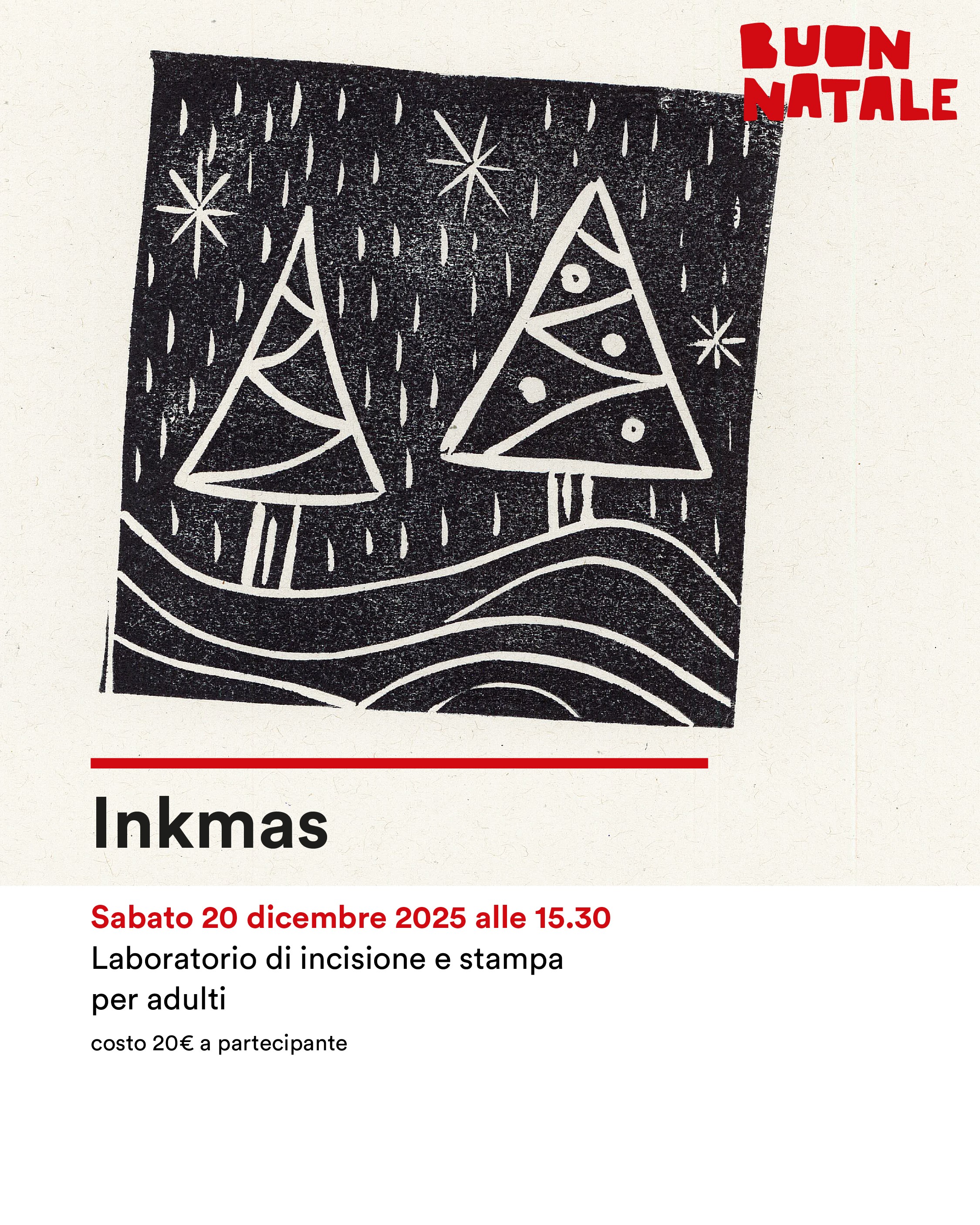 Sabato 20 dicembre, alle ore 15.30, al Museo della Stampa di Mondovì, due laboratori di incisione per tutte le età: Inkmas, dedicato agli adulti (20€), e (St)renne & stampe, per bambini e bambine, tra i 5 e gli 11 anni (5€). Prenotazione obbligatoria via mail entro il 17 dicembre.