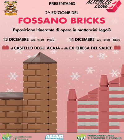 Sabato 13 e domenica 14 dicembre a Fossano il Castello dei Principi d'Acaia e l'ex chiesa del Salice Vecchio ospitano la seconda edizione di Fossano Bricks: esposizione itinerante di opere create con i più celebri mattoncini da costruzione. Orari: sabato dalle 14.30 alle 19.00; domenica dalle 10.00 alle 18.00. Ingresso libero.