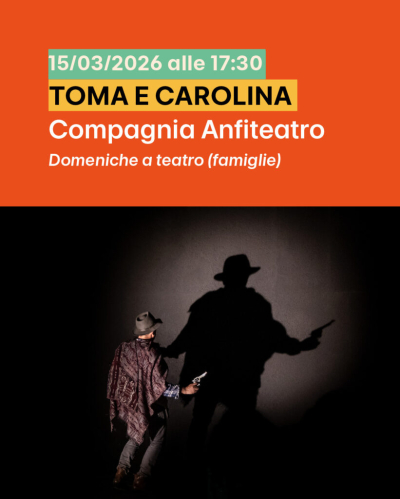 Domenica 15 marzo alle 17.30 la Compagnia Anfiteatro presenta lo spettacolo "Toma e Carolina", a Cuneo presso l'ex chiesa di Santa Chiara (via Savigliano), parte della rassegna "Domeniche a teatro" dedicata alle famiglie. Il programma completo della rassegna è disponibile sul sito ufficiale.