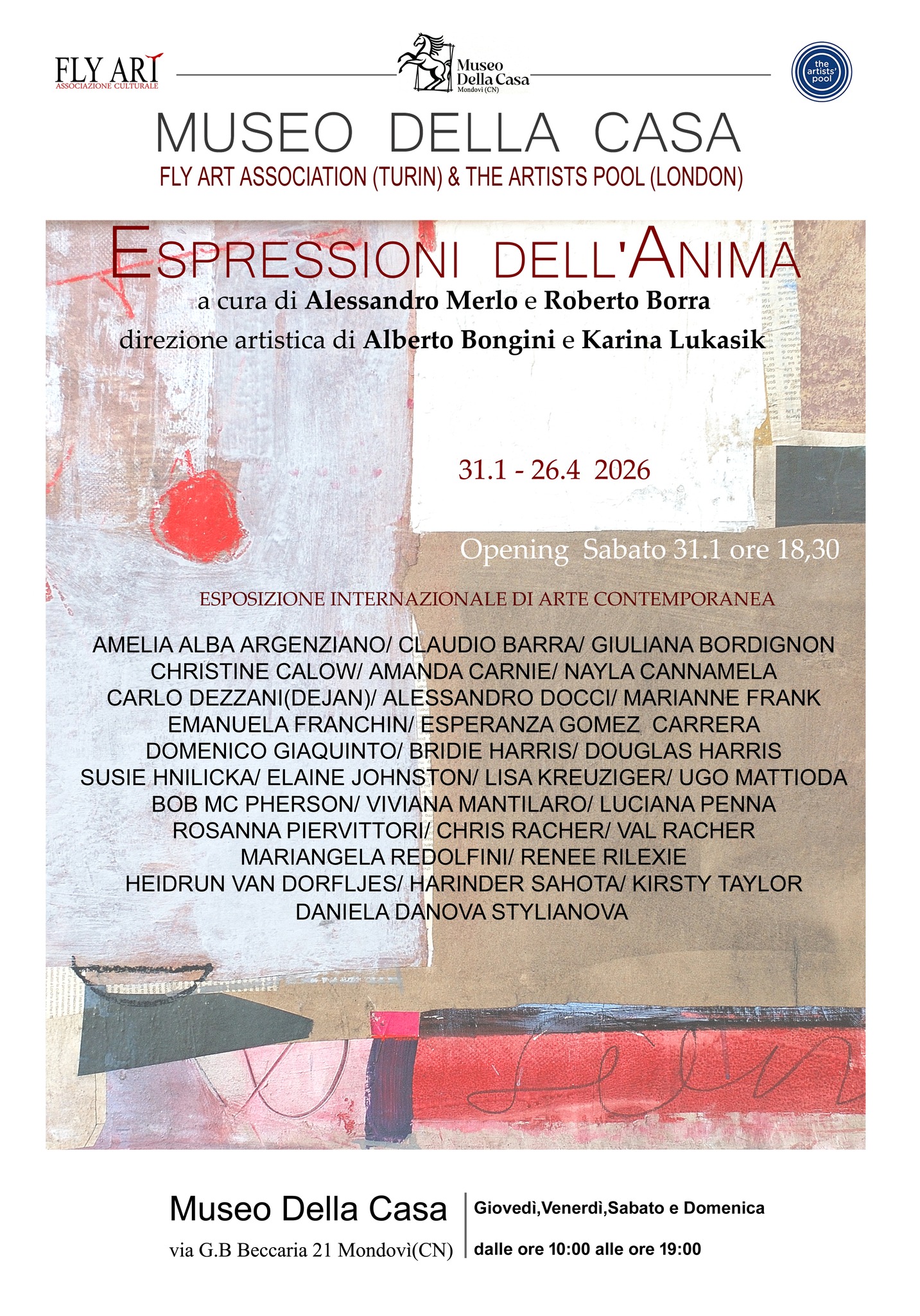 Dal 31 gennaio al 26 aprile il Museo Della Casa ospita la mostra “Espressioni dell’Anima”, un percorso che racconta emozioni, identità e interiorità attraverso l’arte. La mostra, curata da Alessandro Merlo e Roberto Borra propone le opere di circa 30 artisti.