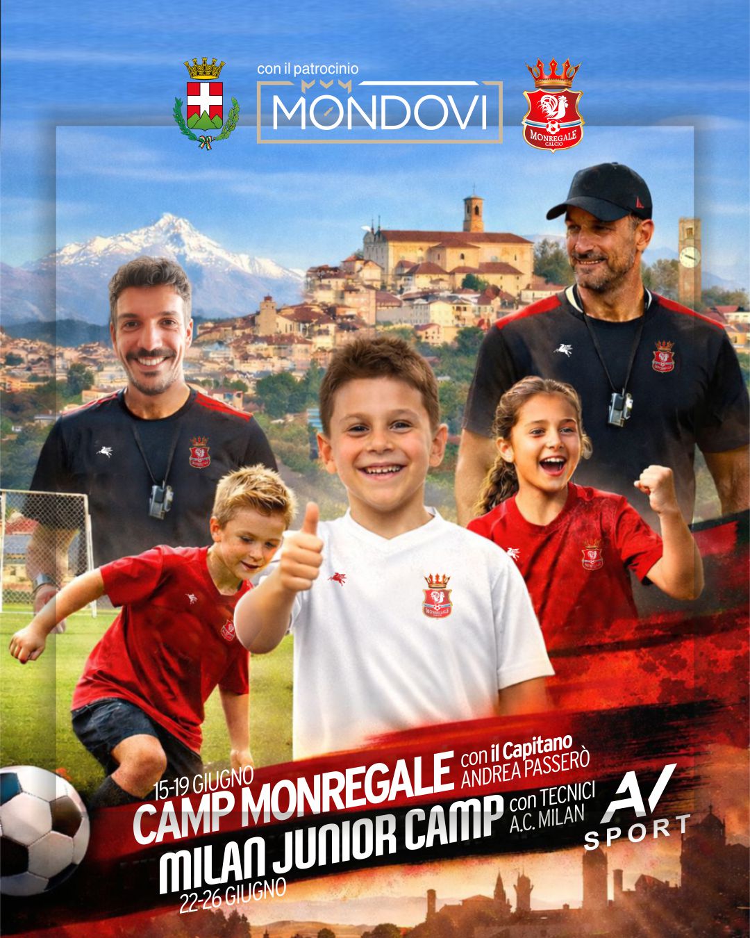 Nell’estate 2026 tornano due settimane di Campi Estivi di calcio a Mondovì. Dal 15 al 19 giugno il tradizionale Camp coordinato dal nostro Capitano di Eccellenza Andrea Passerò, coadiuvato da istruttori e atleti della Società. Dal 22 al 26 giugno Milan Junior Camp, crescita e divertimento per non perdere il ritmo in compagnia di vecchi e nuovi amici.