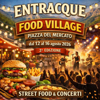 Dal 12 al 16 agosto Entracque sarà il palcoscenico della seconda edizione del “Food Village”, una grande festa a ingresso libero che unisce street food d’eccellenza e musica dal vivo, concerti serali e mercatini. Ogni giornata inizierà già dalle ore 11.00 con l’apertura degli stand gastronomici in piazza del Mercato. Il programma è in fase di definizione.