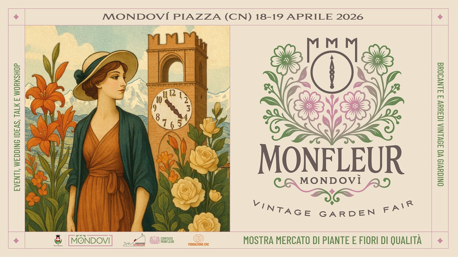 Il 18 e 19 aprile, a Mondovì Piazza arriva "Monfleur", una mostra mercato dedicata a piante e fiori di qualità. L'evento proporrà brocante e arridi vintage da giardino, eventi, idee wedding, talk e workshop. Programma in definizione.