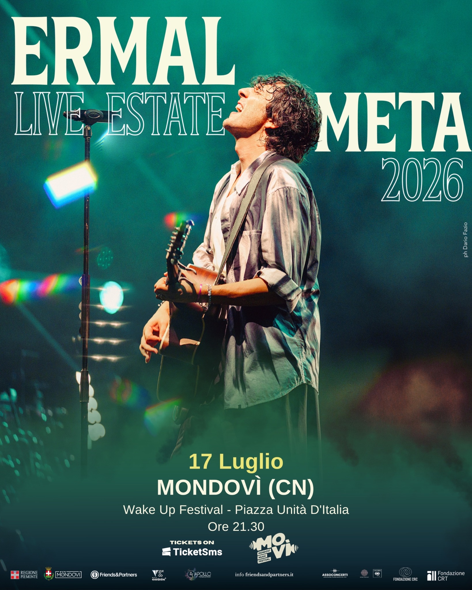 Venerdì 17 luglio alle ore 21.30 Ermal Meta si esibirà al Movì Festival, a Mondovì, in piazza Unità d'Italia. Una delle voci più apprezzate del panorama pop italiano tornerà su un palco del Cuneese per il suo tour Live Estate 2026, con uno spettacolo coinvolgente, tra i suoi brani più amati e le nuove produzioni. Il concerto è organizzato in collaborazione con Wake Up Music Events. Biglietti disponibili qui.