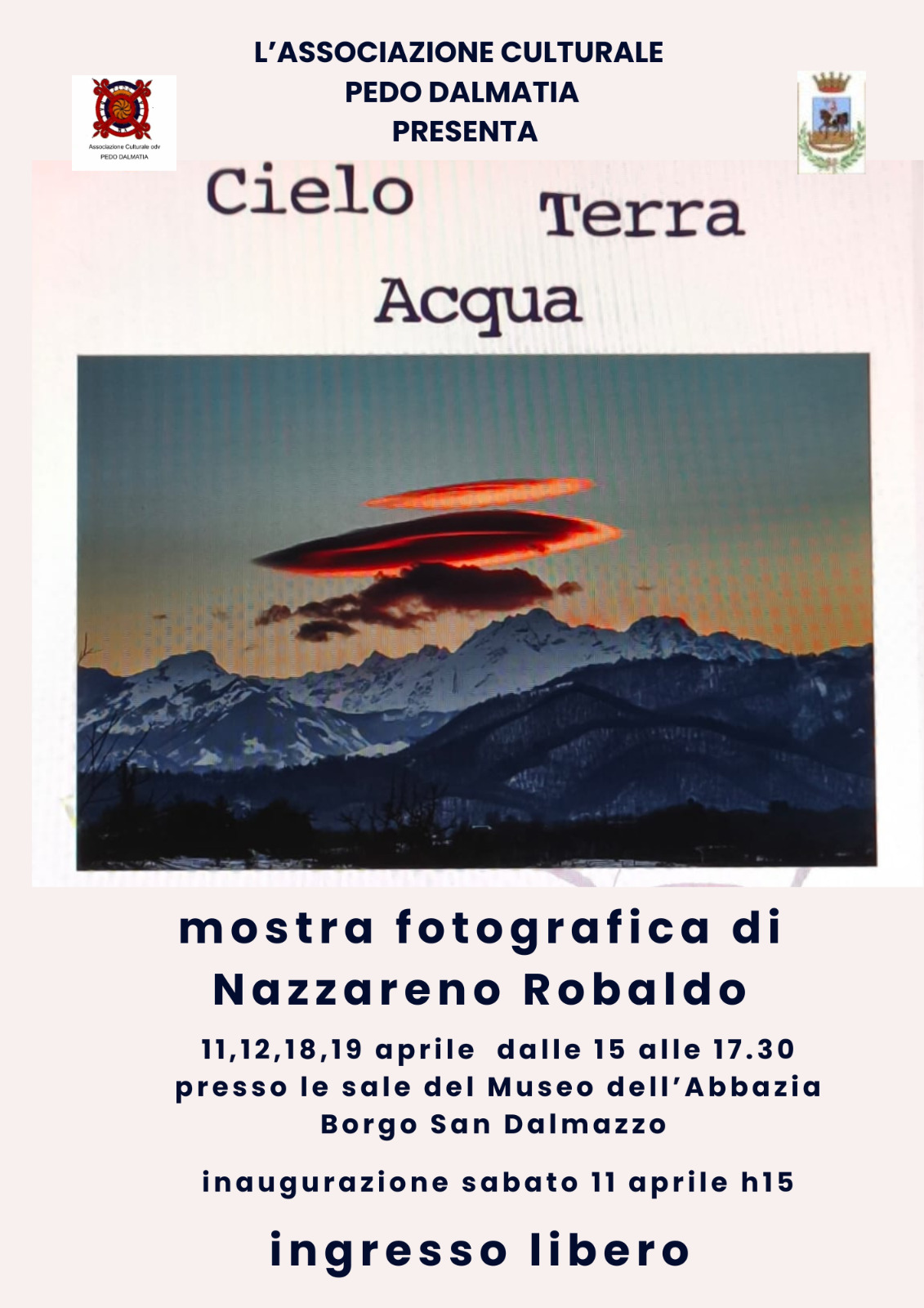 La mostra fotografica "Cielo Acqua Terra", dal 12 al 18 aprile 2026 nelle sale del Museo dell'Abbazia di Borgo San Dalmazzo, presenta panorami a noi noti ,visti con occhio poetico dal fotografo borgarino Nazzareno Robaldo.
