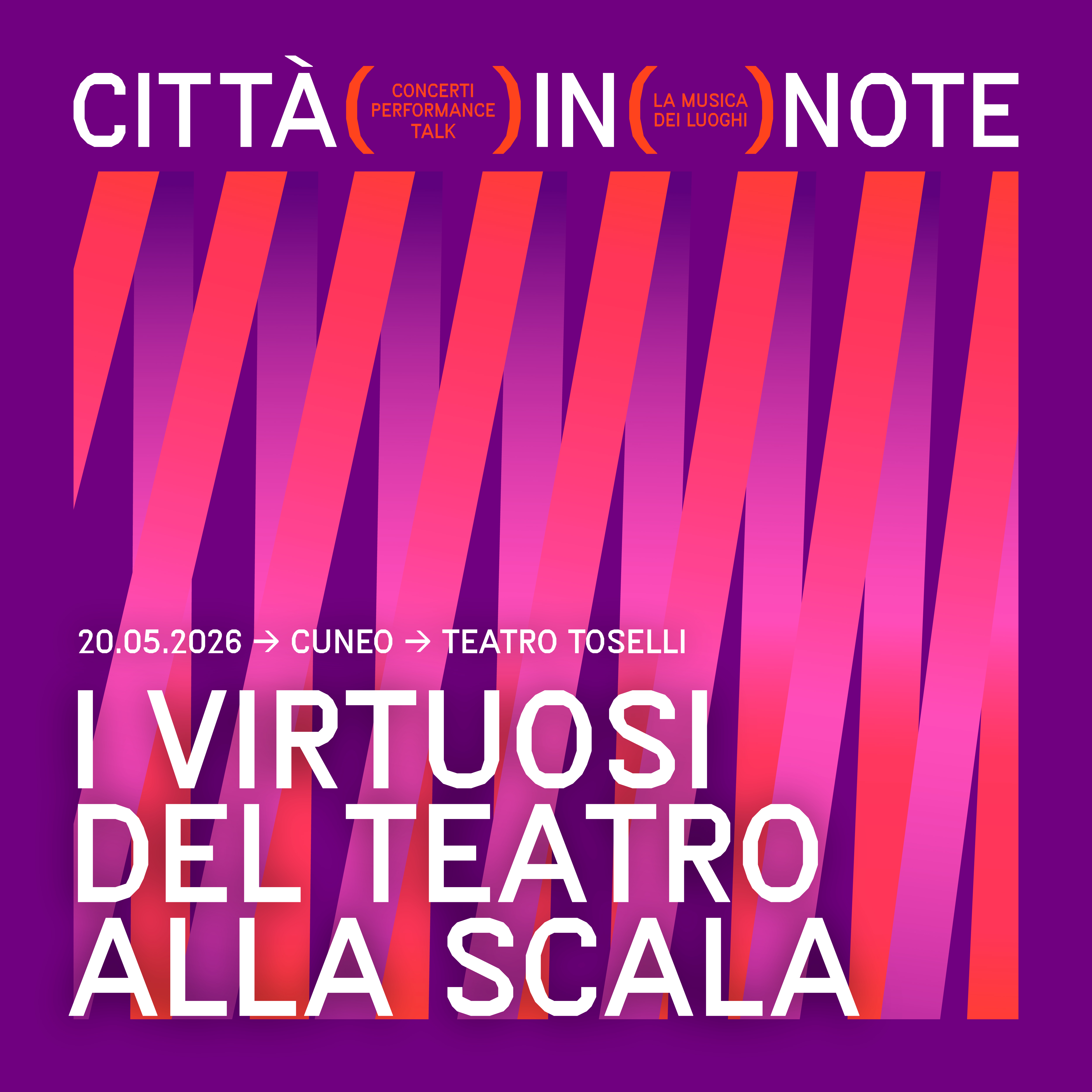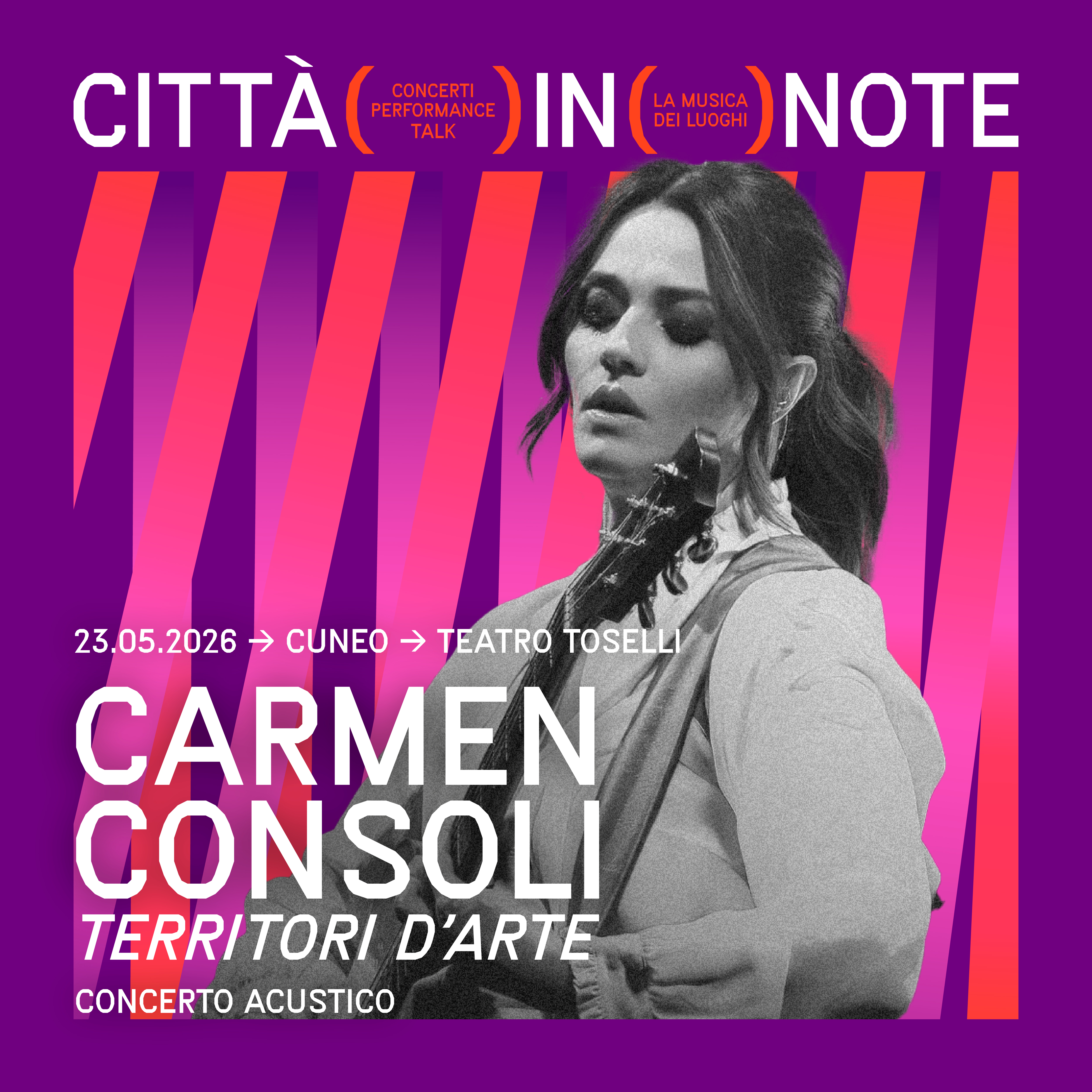 Sesta edizione per l’appuntamento più atteso della primavera cuneese: il festival “Città in note. La musica dei luoghi” torna dal 20 al 25 maggio ad animare il capoluogo della provincia Granda. Concerti, performance, workshop e incontri trasformeranno i più suggestivi luoghi della città in palcoscenici vibranti mettendone in luce il grande valore storico, architettonico e naturale. Programma disponibile qui.