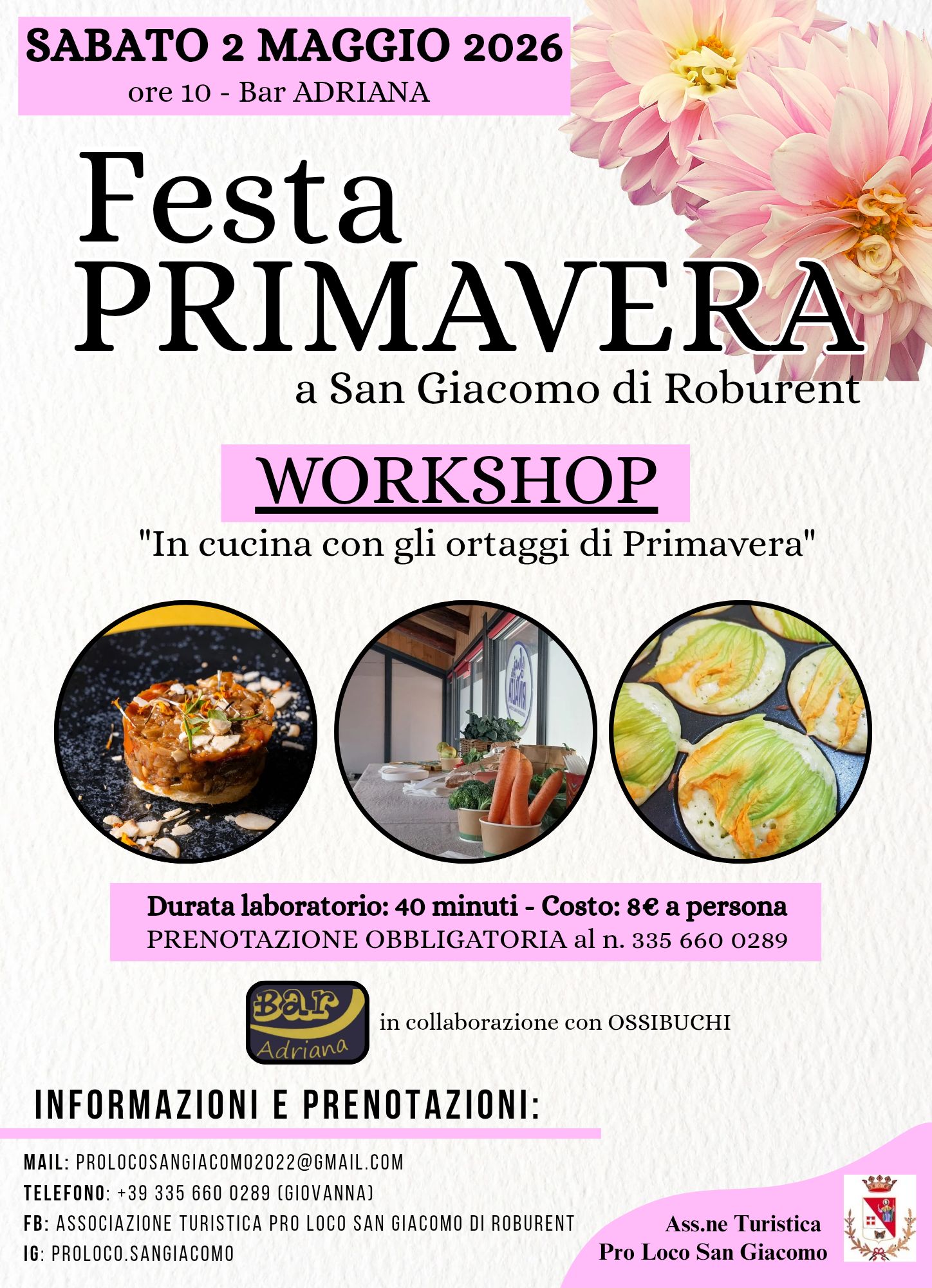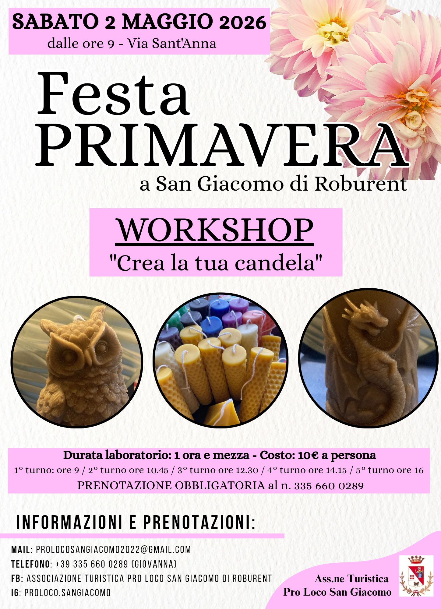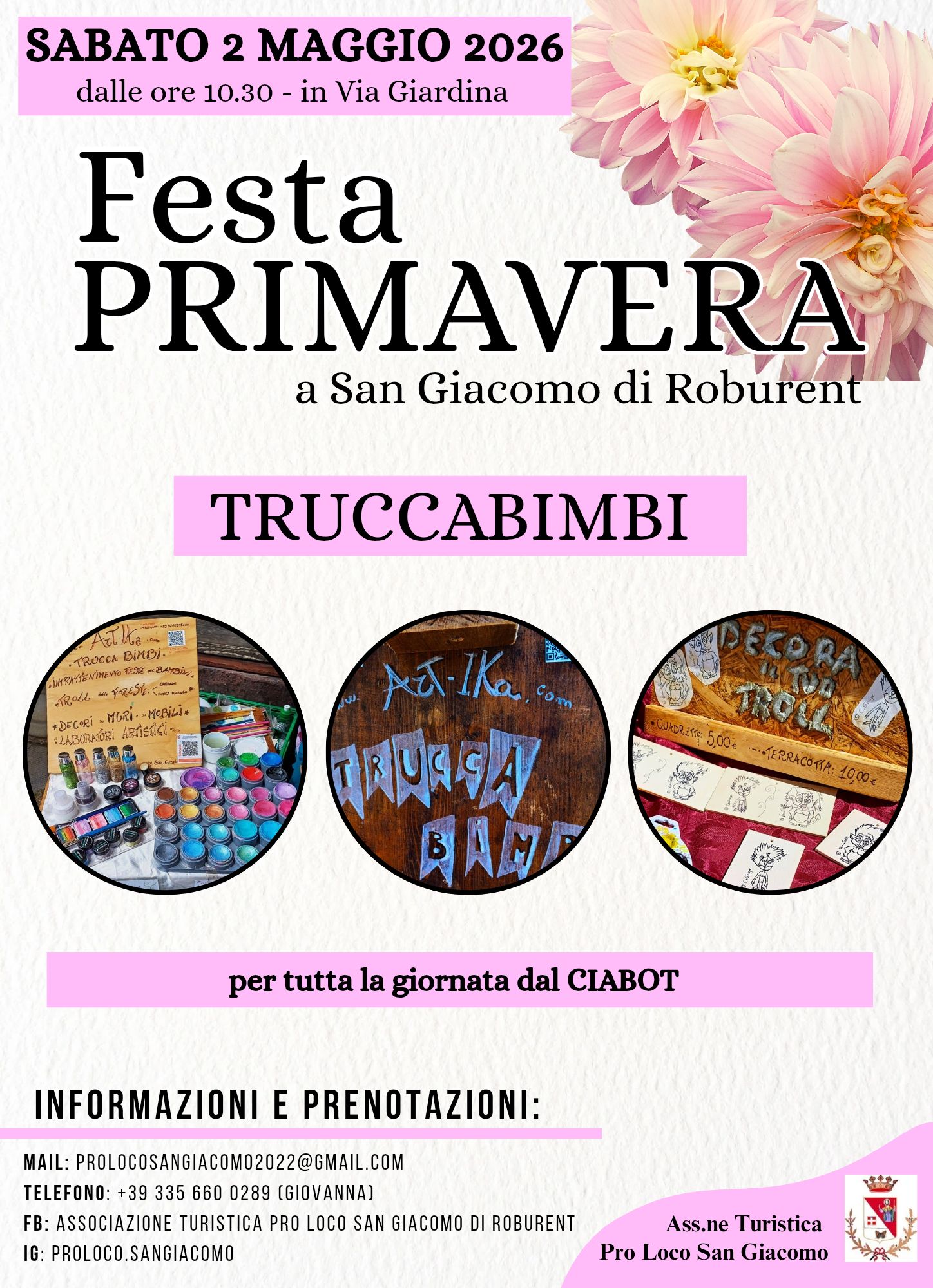 ENOGASTRONOMIA Periodo: 02/05/2026 Località: San Giacomo di Roburent Sabato 2 maggio la Pro Loco San Giacomo organizza la "Festa di Primavera" con eventi per grandi e piccini. Informazioni Pro Loco San Giacomo+39 335 660 0289prolocosangiacomo2022@gmail.com