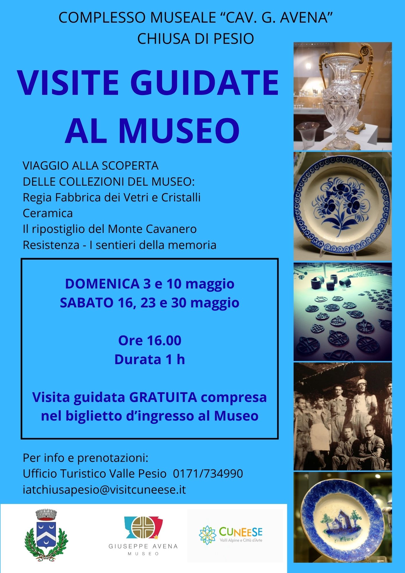 Il Complesso Museale “Cav. G. Avena” di Chiusa di Pesio apre le porte ai visitatori con un ciclo di visite guidate alla scoperta delle sue preziose collezioni. Un’occasione unica per immergersi nella storia, nell’arte e nella memoria del territorio attraverso un percorso ricco e affascinante.