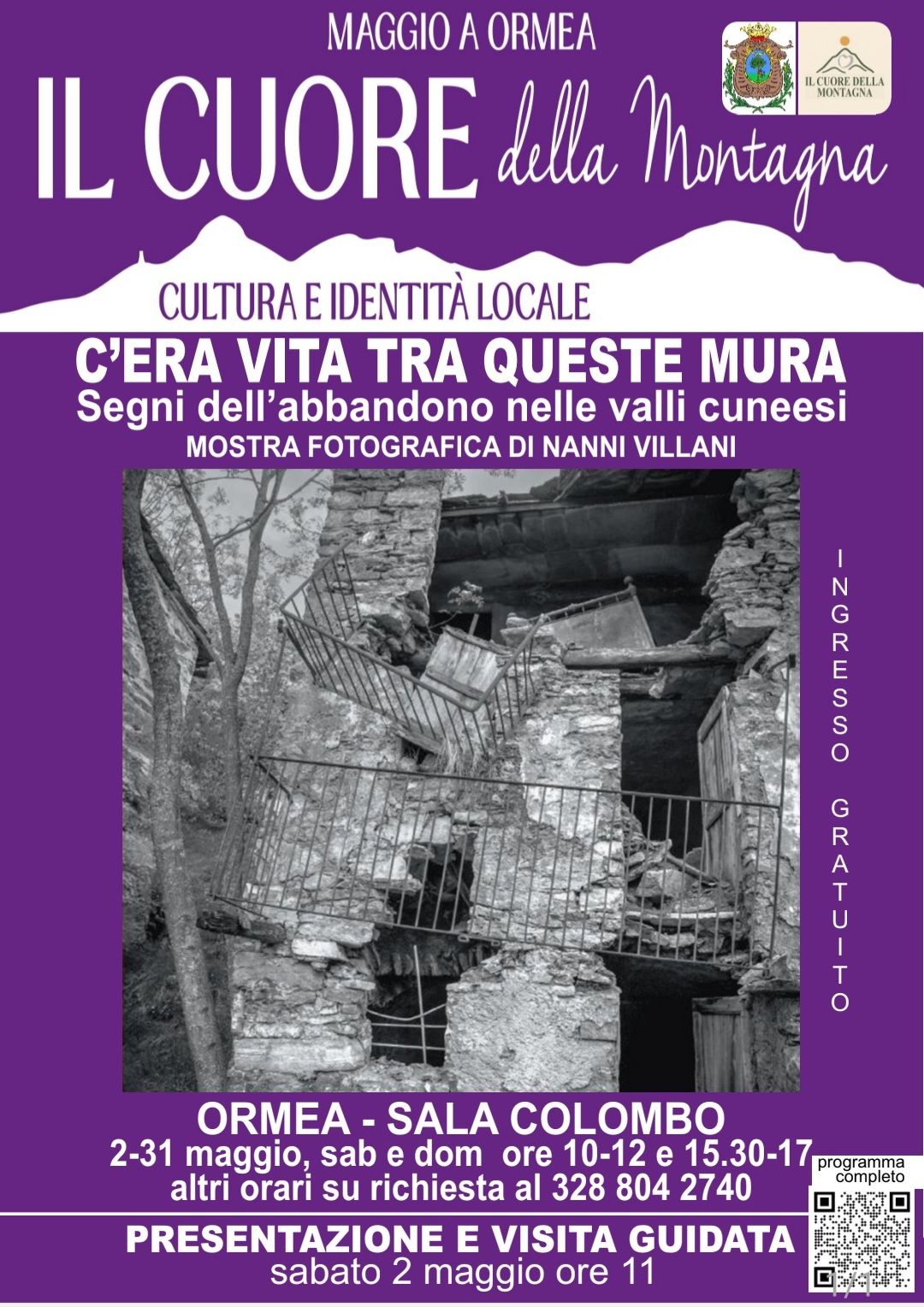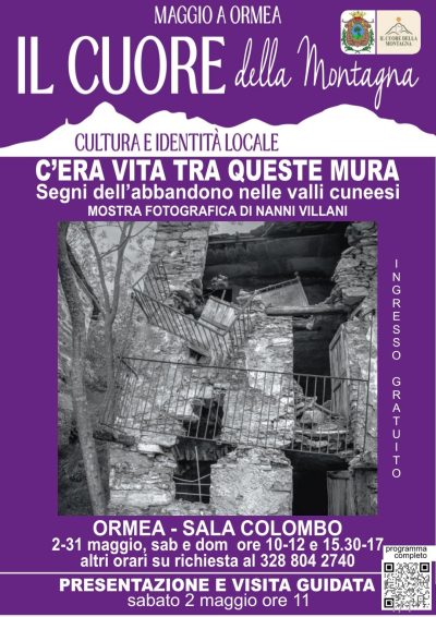 Per l'intero mese di maggio, in occasione de 'Il Cuore della Montagna', è possibile visitare la mostra fotografica 'C'era Vita Tra Queste Mura', rappresentata da immagini in bianco e nero che mostrano i segni di abbandono nelle borgate abbandonate delle Alpi Cuneesi, a cura di Nanni Villani.