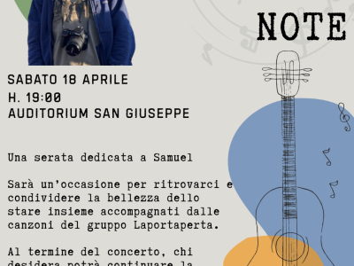 Sabato 18 aprile, alle ore 19.00, presso l'Auditorium San Giuseppe di Marene, concerto de La Porta Aperta dal titolo "L'Eco delle Note" in ricordo di Samuel Tamagnone. Sarà un'occasione per trovarsi e condividere