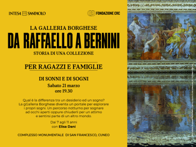 Sabato 21 marzo, alle 19.30 a Cuneo presso il Complesso Monumentale di San Francesco, visita spettacolo notturna in mostra per bambini dai 7 agli 11 anni con Elisa Dani.