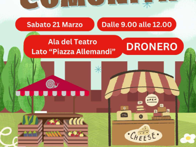 Sabato 21 marzo, dalle ore 9.00 alle 12.00, presso l'ala del teatro di Piazza Allemandi, Slow Food ed il Comune di Dronero organizzano il Mercato della Comunità, iniziativa che ha come scopo la v