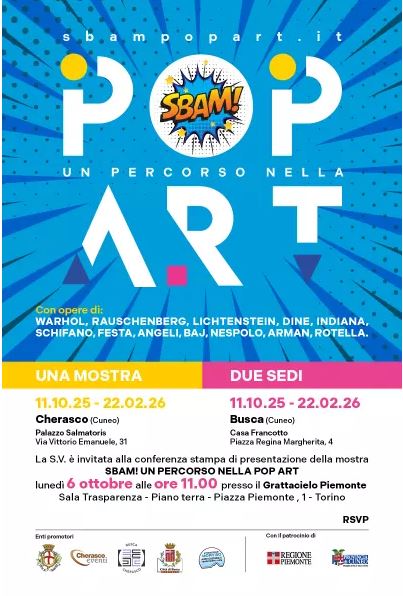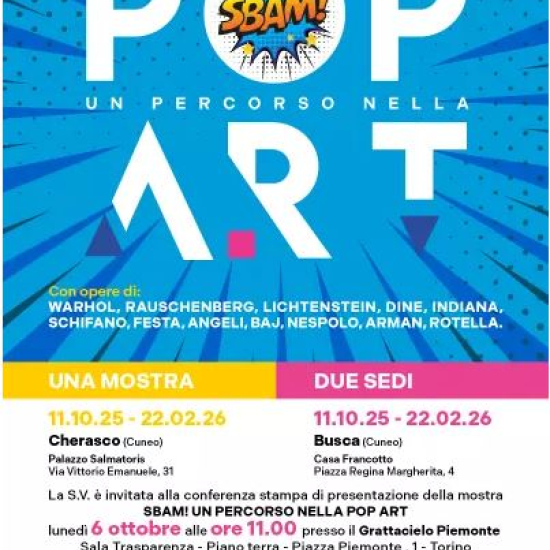 Casa Francotto a Busca ospiterà, dall’11 ottobre 2025 al 22 febbraio 2026, la mostra "SBAM! Un percorso nella Pop Art", che celebra il movimento della Pop Art attraverso le opere di artisti come Warhol, Rauschenberg, Lichtenstein, Dine, Indiana, Schifano, Festa, Angeli, Baj, Nespolo, Arman e Rotella. La mostra propone un viaggio vibrante attraverso la Pop Art.
