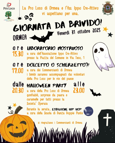 La Pro Loco di Ormea e l’Associazione Ippo Cre-Attivo invitano grandi e piccini a festeggiare insieme Halloween con una giornata piena di divertimento, creatività e… qualche brivido!